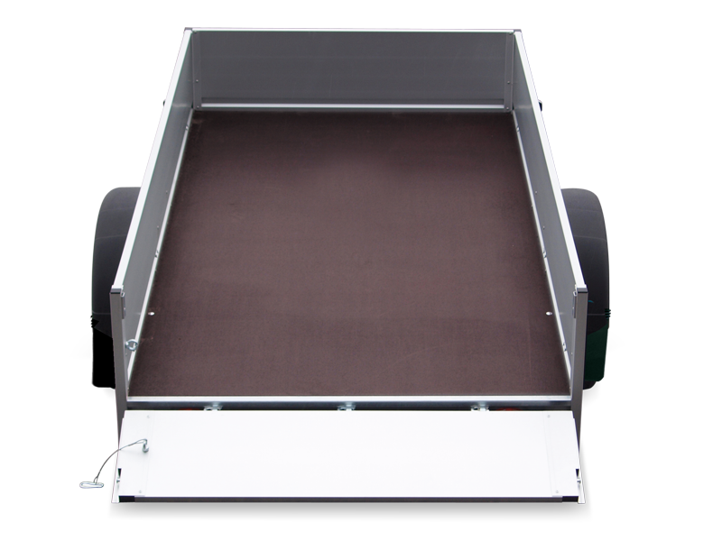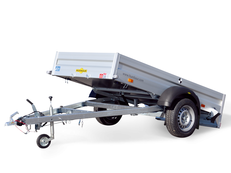 Gartengeräte und Motorräder beispielsweise lassen sich leichter transportieren, wenn der Anhänger kippbar ist. Für diese und ähnliche Verwendungen haben wir den Tieflader HA in dieser Variante mit einem kippbaren Kasten versehen. Ein Stoßdämpfer erleichtert Ihnen das Abkippen. Verstärkungen, wie beispiels- weise zusätzliche Scharniere an der Heckklappe, machen den Anhänger besonders stabil.