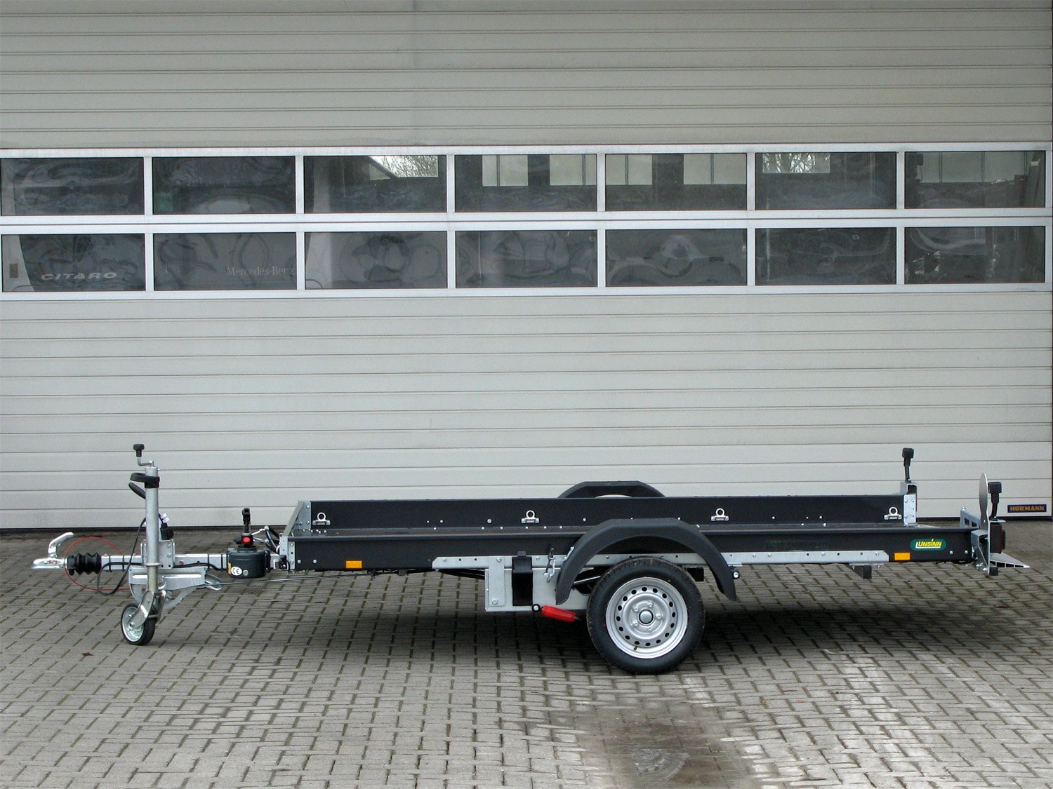 | Aufbau | Durchgehender Auffahrkeil für Auffahren über die gesamte Ladefläche, klappbarer Kennzeichenhalter, stabile Kunststoffkotflügel |