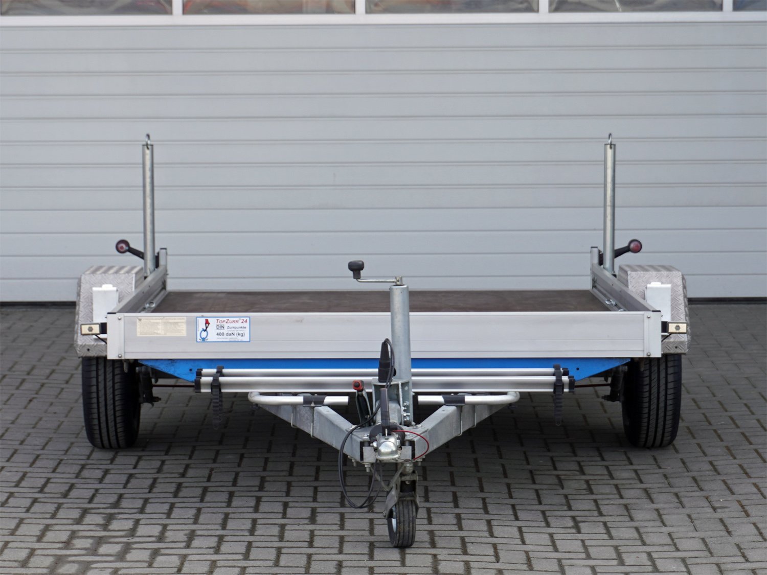 Die geschlossene Bodenplatte aus Multiplex-Siebdruckplatte, rutschhemmend und wasserfest verleimt, sorgt für eine hohe Lebensdauer und Sicherheit. Das integrierte Seitenrahmenprofil mit Zurrprofil ermöglicht optimale Ladungssicherung mit TopZurr® 24, während die Stützrad-Klemmhalterung platzsparend zwischen den V-Zugholmen montiert ist.