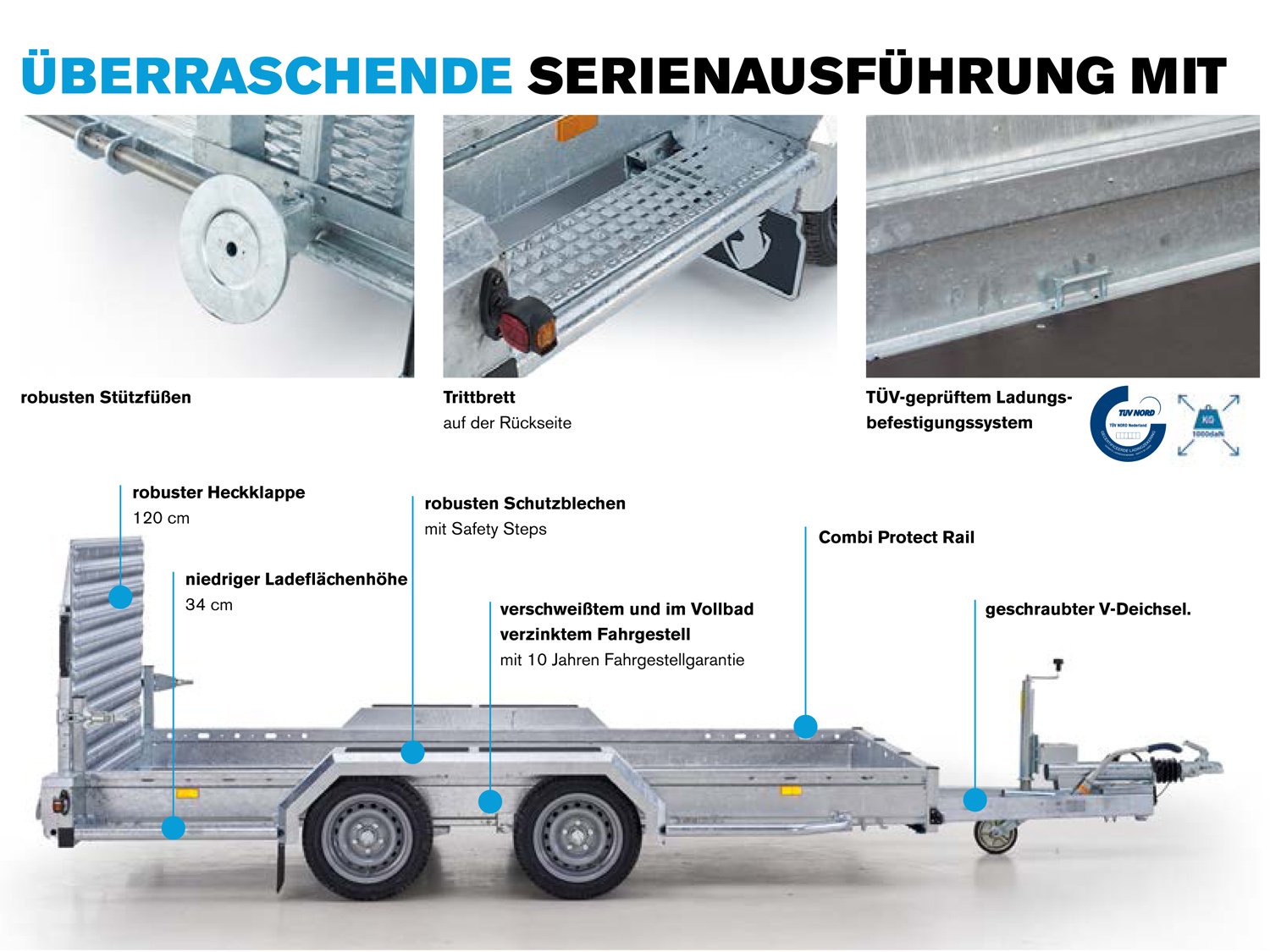 • Fahrgestell: Komplett verschweißt und vollbadverzinkt
