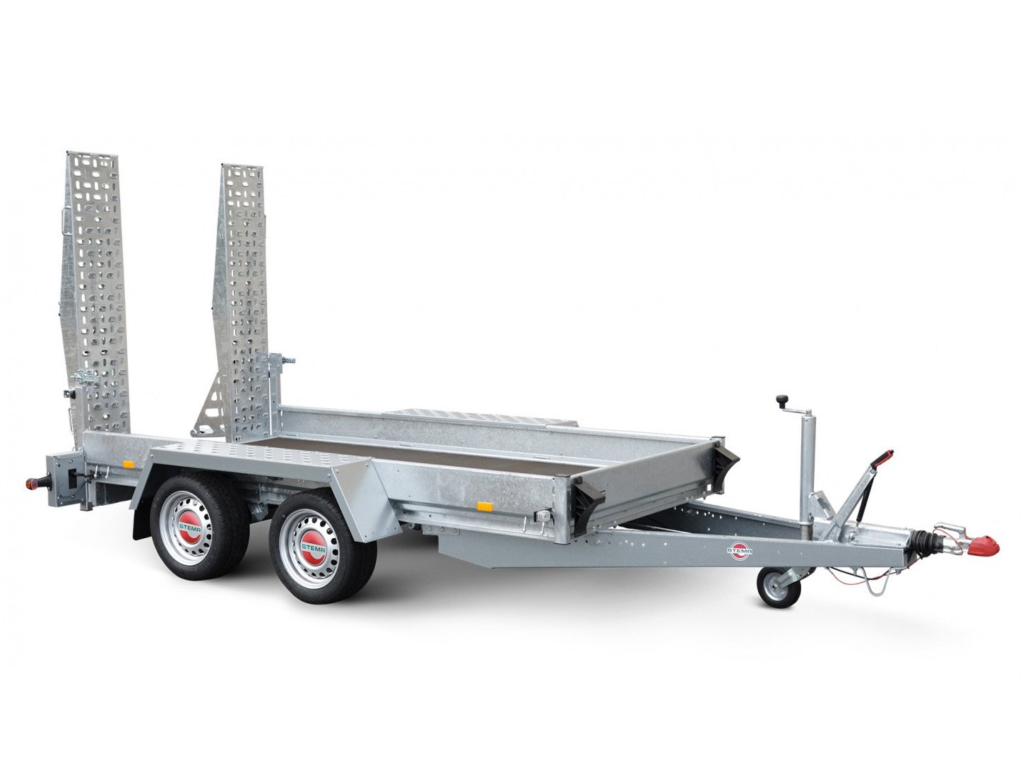 Der STEMA BMAT O2 27-30-14.2 ist ein kompakter, universell einsetzbarer Baumaschinentransporter, ideal für den gewerblichen Einsatz. Dank der stabilen Auffahrrampen mit extrem niedrigem Auffahrwinkel (18°) lassen sich Baumaschinen und Arbeitsgeräte mühelos verladen.