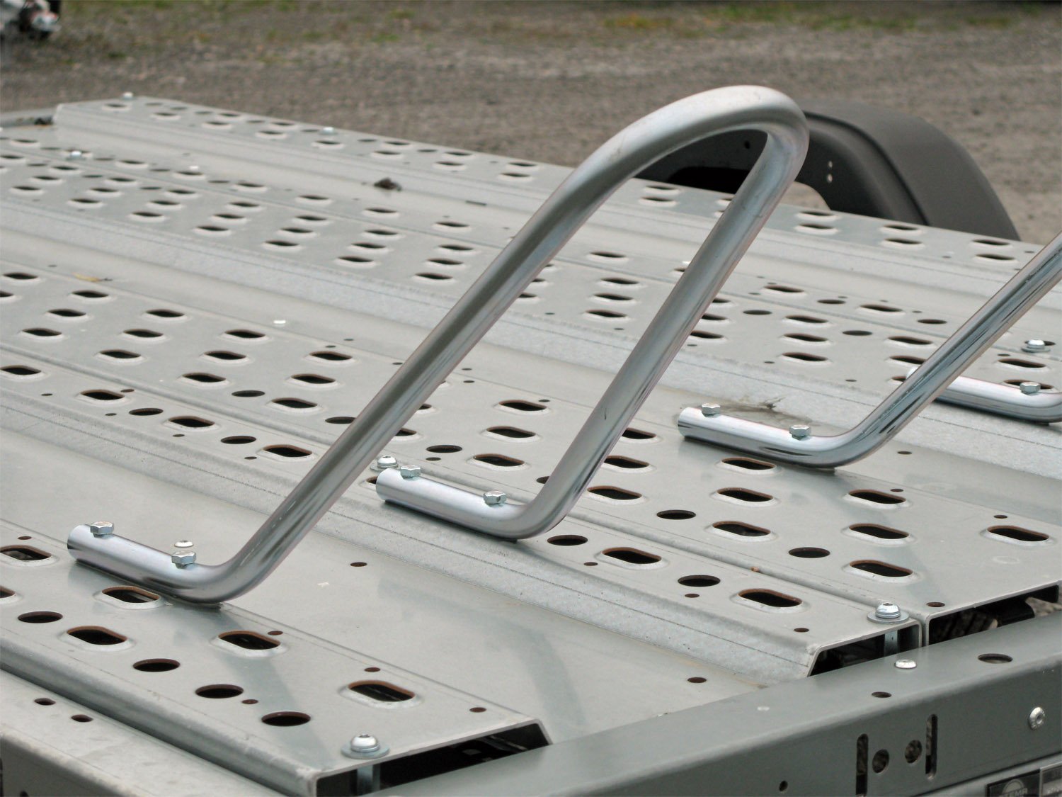 - Stabile Radbügel für sicheren Halt der Motorräder