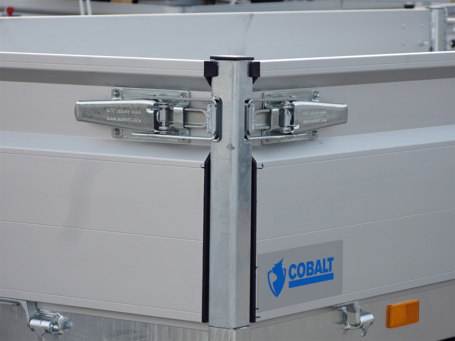 Der Hapert Cobalt HM-3 – 3500 3 Achs Multi ist ein robuster Dreiseitenkipper mit drei Achsen und einer 40 cm hohen Aluminium-Pendelbordwand. Dieses Modell ist mit einem umfassenden Auffahrpaket ausgestattet und verfügt über eine elektrische Bedienung mit Batterie. Dank der Parabelfederung inkl. Stoßdämpfer ist eine Zulassung für 100 km/h möglich. Das niedrige Fahrwerk mit einer Ladebodenhöhe von 69 cm und die Bereifung von 195/50 R13 sorgen für eine optimale Stabilität und Handhabung. Die zwei Aluminium-Auffahrschienen sind unter dem Boden integriert und verfügen über ein U-Profil zum einfachen Einhaken. Zusätzlich bietet der Kipper zwei ergonomisch bedienbare „Heavy Duty“-Kurbelstützen (90° drehbar und verstellbar) sowie eine Kurbel mit Transporthalterung auf der vorderen Bordwand. Der vollverzinkte 3 mm Stahlboden, die 400 mm hohen Aluminium-Bordwände mit eingebauten Verschlüssen sowie die oben und unten scharnierende Heckwand (Pendelklappe) garantieren höchste Funktionalität. Integrierte Anbindebügel in den Seitenrändern, ein Automatikstützrad und ein separat mitgeliefertes Batterie-Ladegerät gehören ebenfalls zur Ausstattung. Der Kippwinkel beträgt 50 Grad nach hinten und 45 Grad seitlich. Gegen Aufpreis sind eine Nothandpumpe, Bordwandaufsätze, Gitteraufsätze und Planenaufbauten verfügbar.