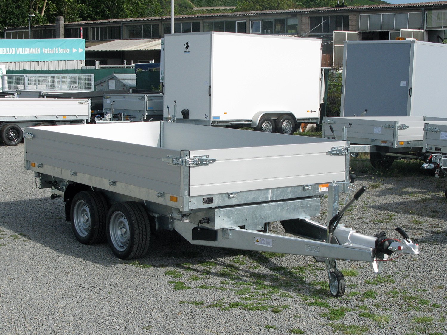 Der Saris K3 306 170 3500 2 E Profi ist ein professioneller Dreiseitenkipper mit elektrischer Bedienung, Rampen im Schacht und stabilen Stützen. Sein vollständig verschweißtes und feuerverzinktes Chassis gewährleistet maximale Stabilität und Langlebigkeit. Ausgestattet mit doppelwandigen Aluminium-Bordwänden (30 cm hoch) mit Spannverschlüssen, einem schweren Automatik-Stützrad und einer Stahlplatte auf Holzboden. Die Ladungssicherung wird durch acht geräuschhemmende Zurrbügel (800 daN) sowie sechs Seilhaken und Scharniere mit Netzhaken optimiert. Der Kippwinkel beträgt 42 Grad, ideal für effizientes Entladen.