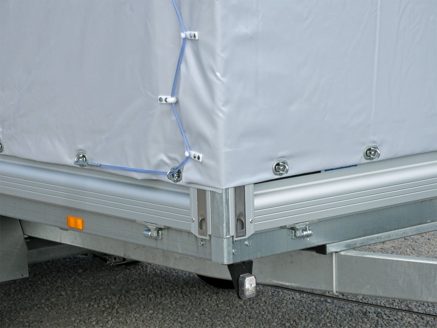 - Abnehmbare Bordwände aus eloxiertem doppelwandigem Aluminiumprofil
