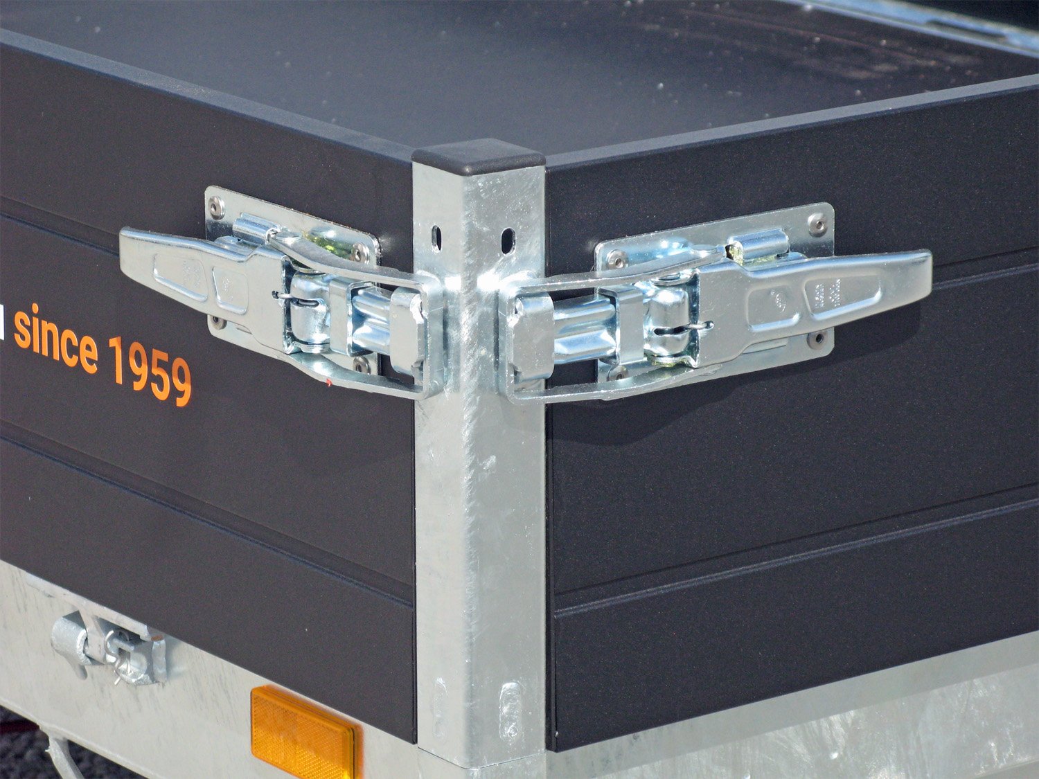 - Bordwände: doppelwandiges Aluminium, 30 cm hoch mit Spannverschlüssen