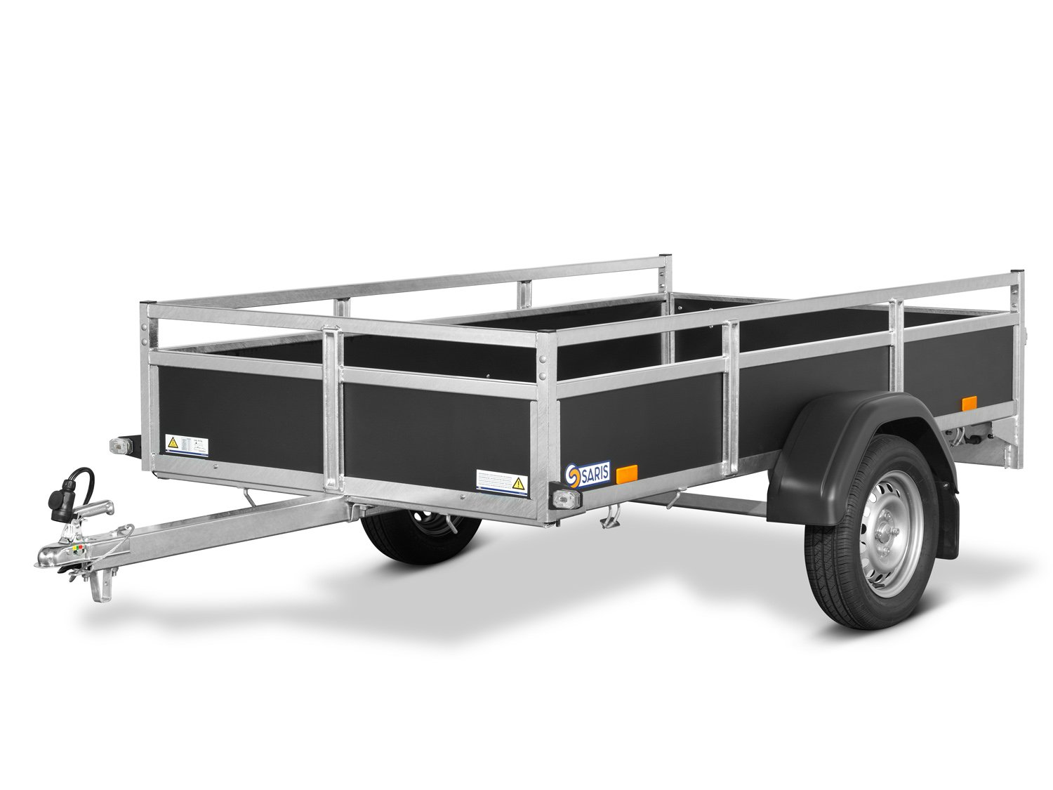 Der Saris CW 255 133 750 1 ist ein zuverlässiger und stabiler Kastenanhänger mit einer feuerverzinkten Stahlreling auf drei Seiten. Die abnehmbare Heckwand, die selbstsichernden Verschlüsse und die massive T-Deichsel bieten maximale Flexibilität und Sicherheit beim Transport.
