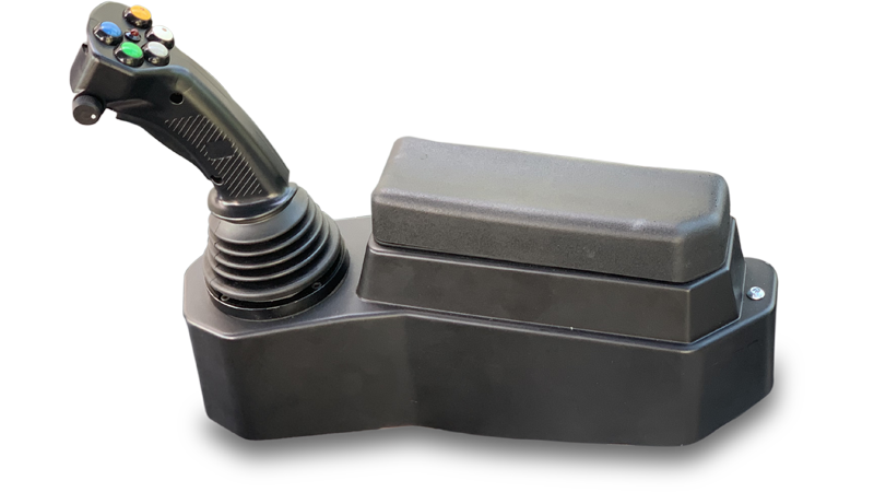 | Joystick | Als Option. Proportionale elektronische Steuerung von Heckkrafthebern und Steuerventilen, potentiometer zum Einstellen der Empfindlichkeit des Joysticks, ON /OFF Taste für die Zapfwelle und Armlehne mit Ablagefach |